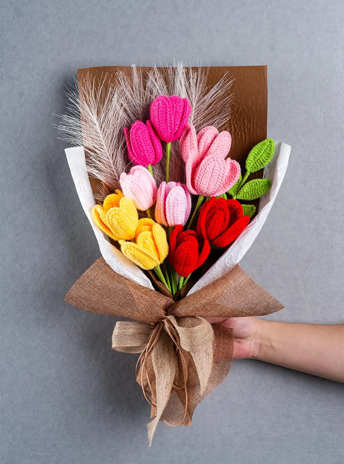 Crochet flower stems and bouquets that bring color, warmth and joy to every space.